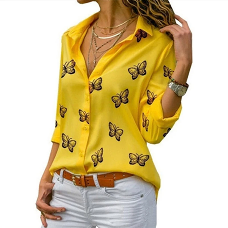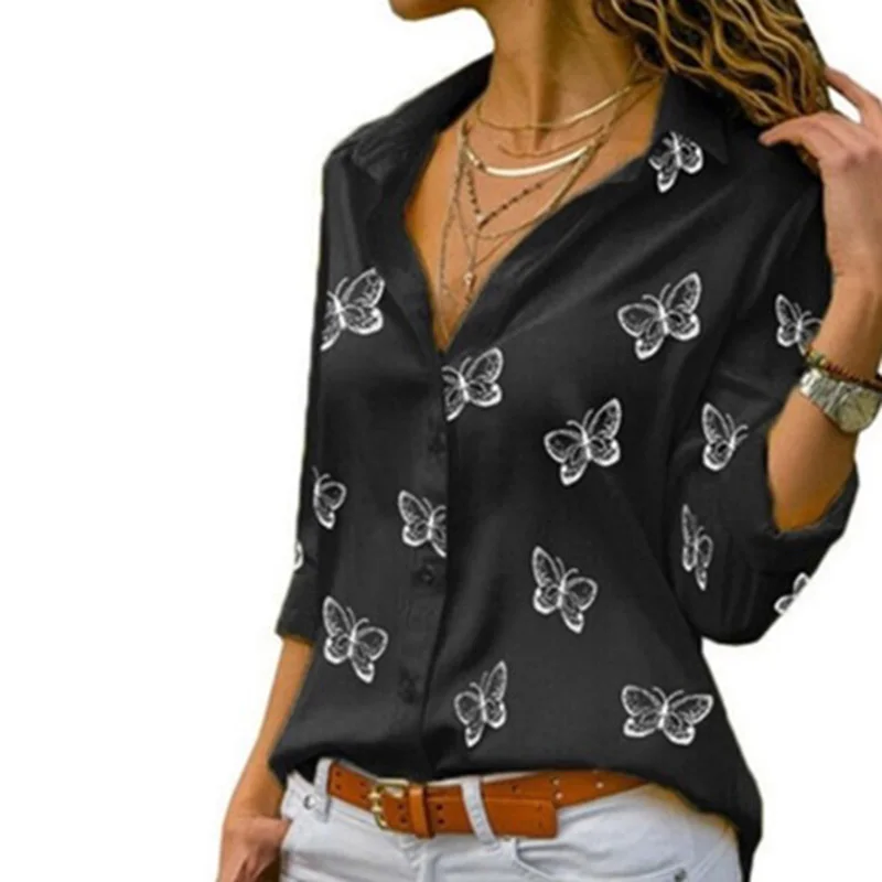 New Fashion Butterfly Print Women Blouses Long Sleeve
