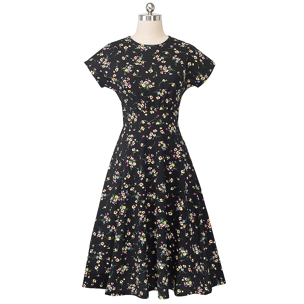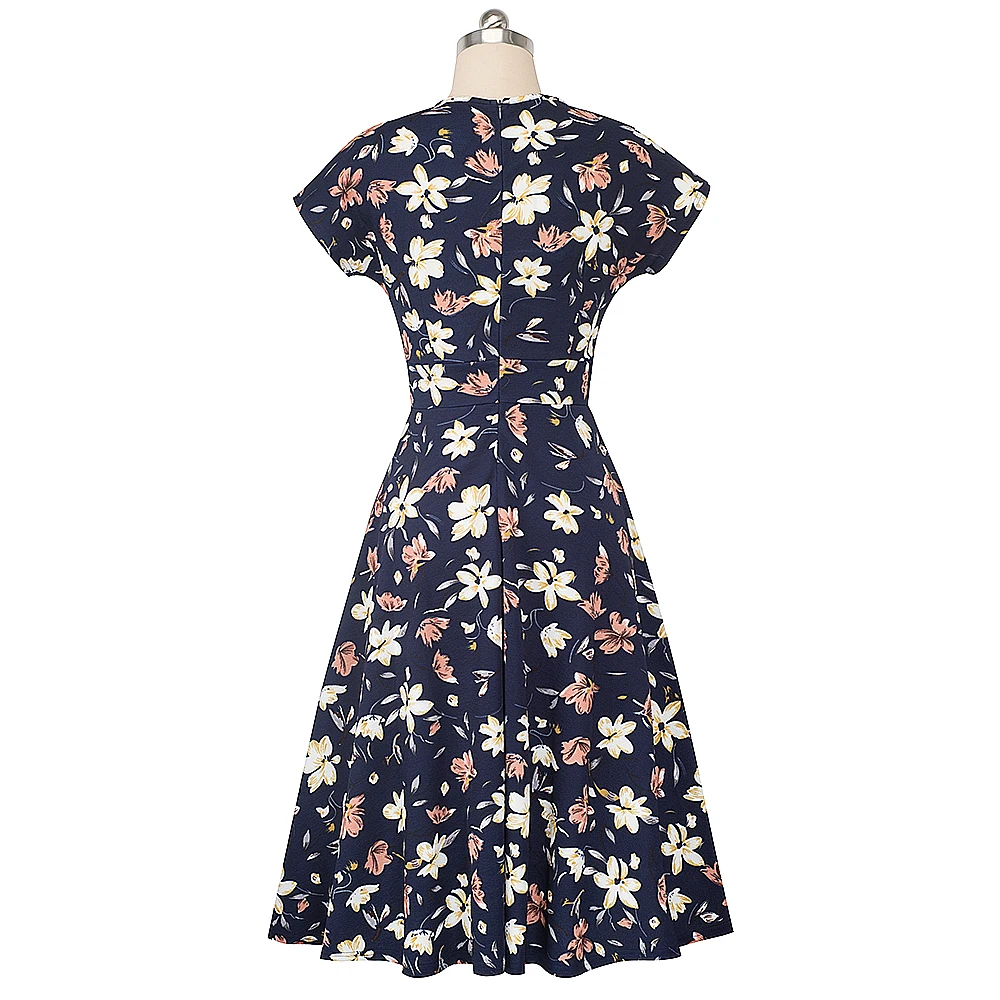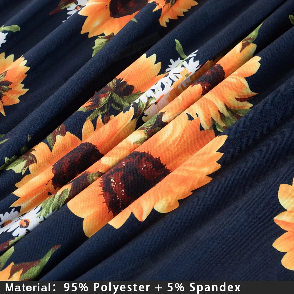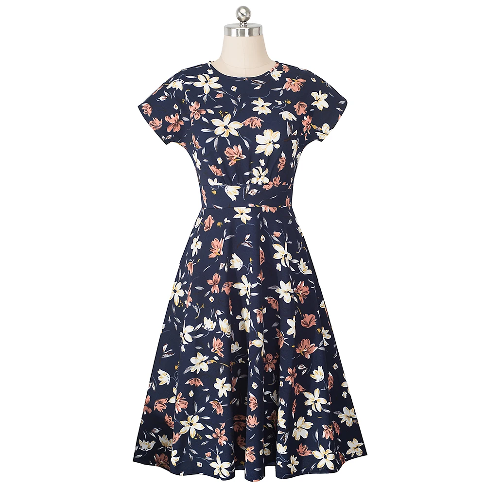 Vintage Retro Sun Flower Printed vestidos Business Party Female Flare Swing Dress
