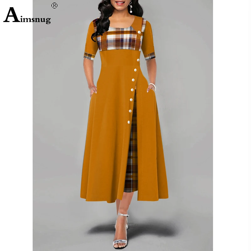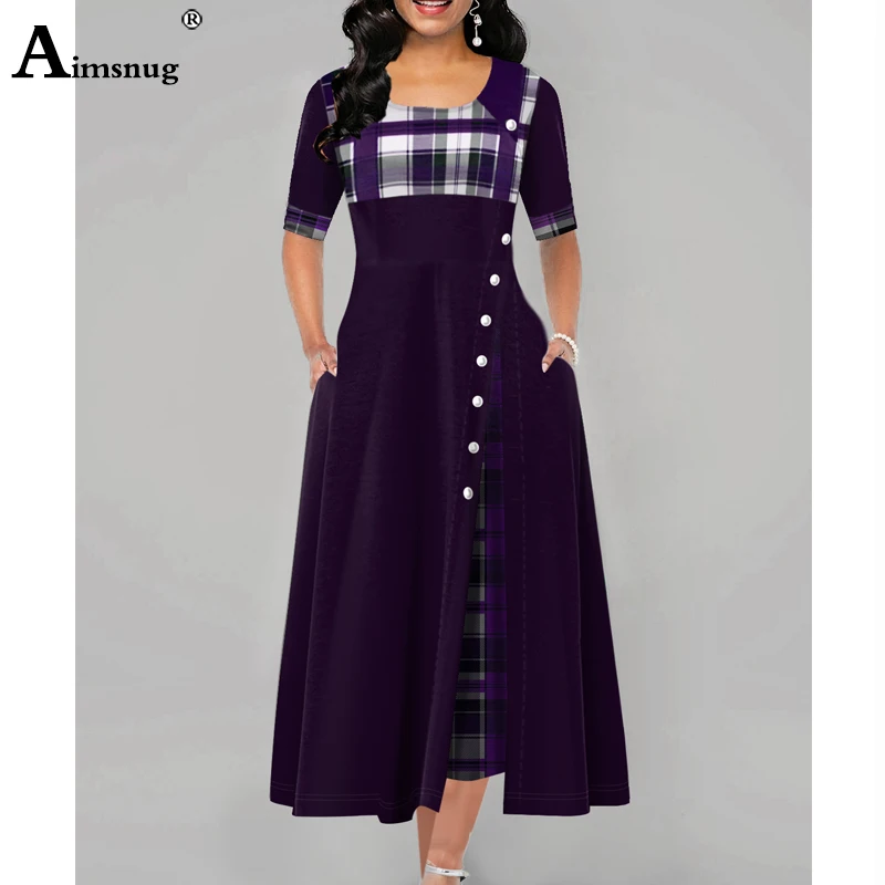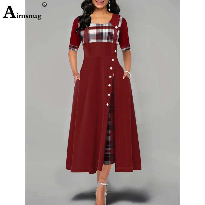 Women Elegant Long Plaid Print