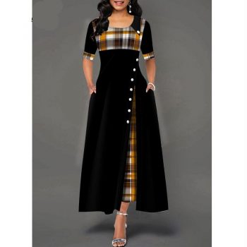 Vintage Elegant Patchwork Round neck Pinup Women Dress